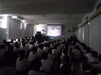 2年生は、本日の5限目にビデオアニメ『対馬丸 さようなら沖縄』を鑑賞し、学童疎開輸送中にアメリカ軍潜水艦の攻撃を受け沈没し、犠牲者数1,476名を出した「対馬丸」の悲劇について考える時間を持ちました。