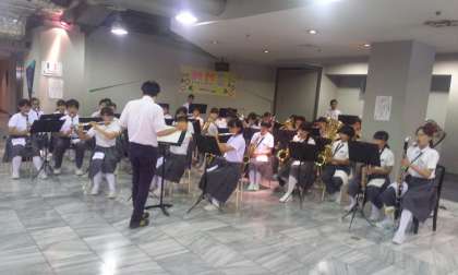 本日は、「新大阪マルシェ楽市楽座+あさがお市」の催しにご招待いただき、本校音楽部がミニコンサートを行いました。