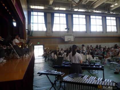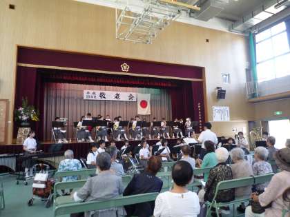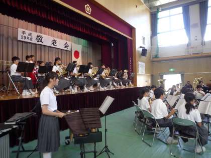 恒例の北中島地域の敬老会も今年は第67回を迎え、例年通り、本校の音楽部がお祝いの演奏をしました。今年は、「情熱大陸」に始まり、「ハナミズキ」、NHK朝ドラの主題歌「ありがとう」「365日の紙飛行機」を熱演しました。見に来てくださった皆さんも喜んでくださり、孫のような本校生徒たちに温かい拍手を送ってくれました。