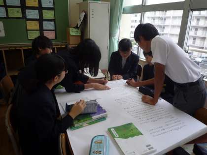 中間テストを一週間後に控えて、生徒自らが有名な古典作品を題材にテスト問題を作りました。班ごとに出題し、答えたポイントを競います。さてさて、どんないい問題、珍問題、迷解答が出てくるのでしょう。