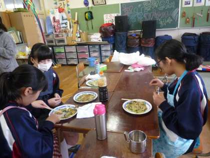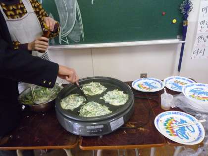 12月9日(土)には、本校の国際クラブ「ホランイチプ」のメンバーと保護者の方々が集まって、懇親と連絡会を兼ねて料理会を催しました。生徒たちが一生懸命に焼いたチヂミを囲んで、他の部活動に来ていた先生方もお相伴させてもらいました。