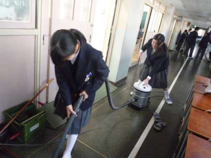 本日をもって2学期の授業が終わり、あとは25日の終業式を残すのみです。学校も新年、新学期を迎えるために普段は掃除しないところまで、徹底的に磨き上げ、そして最後に床のワックスがけをしました。全校生の皆さん、ご苦労さまでした!