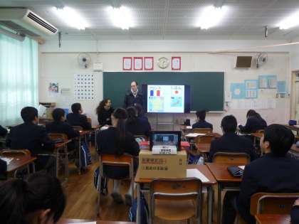 フランスからのゲストは初めてなので、日本と異なるフランスの中学校事情がおもしろかったです。フランスに関するクイズもフランス語でした。みんなは読めたかな?