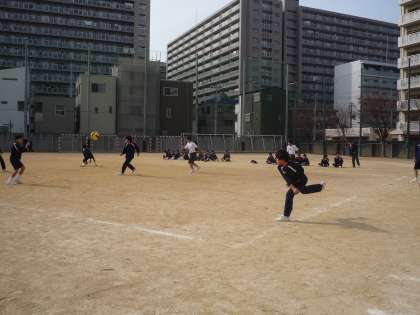 男子は、外でドッジボールを行いました。ボールが2個使われていて、外野と内野からのボールの応酬に緊張感がみなぎり、迫力満点でした。男子の優勝は4組、準優勝は1組でした。