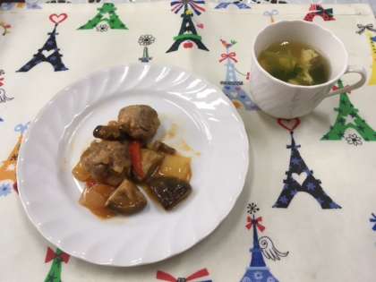 「酢豚と卵スープ」を調理しました。