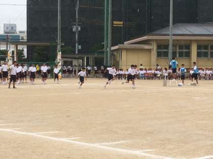 小降りの雨の中、順調にスタートしたのですが、グランドに水たまりがたくさんでき、危険と判断しました。非常に残念です。