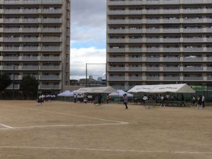 ラジオ体操の後、50Mハードルの途中からスタートします。