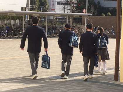 3年生の私立高校受験者は、本日、1日目のテスト終了後、出願するため一斉に学校を出発しました。