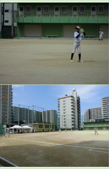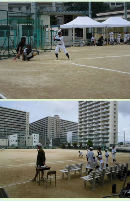 大阪市立巽中学校の野球部が来校し、練習試合をしました。