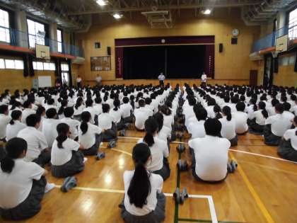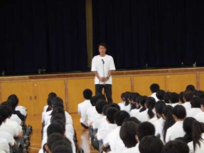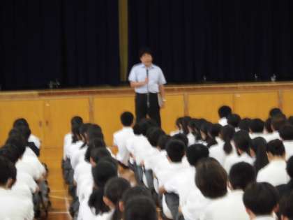 校長先生からは、卓球男子の元世界チャンピオンである小野誠二さんが、かつて中学生に対して指導した時に「一流の選手は一流の行動や態度をとる」「毎日の生活をきちんとできているか」とおっしゃられました。夏休みにがんばって、称賛に値する結果が残せても、日ごろの行動や生活が良くなければどんな世界でも一流には慣れないという話でした。
