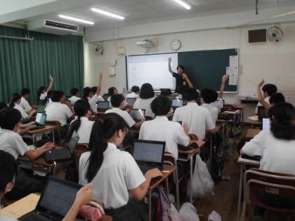 自分の家に置いてある物を書き出させて、その一つひとつの提示されている材料について発表をしました。生徒は、積極的に発言をしていました。