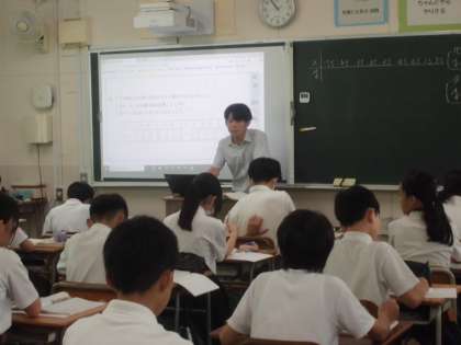 反比例の式から対応表を作成し、それを平面上に座標をとり、反比例のグラフを書きました。自分の考えを広げたり深めたりする授業でした。