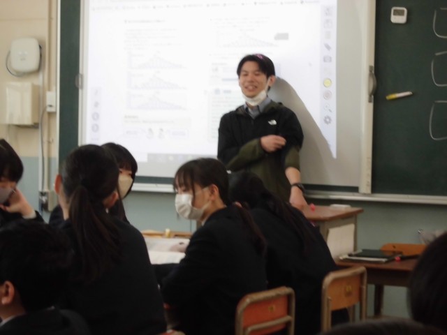 「データ分析と活用」について学習しました。生徒たちは実際の数値をもとに、代表値や散らばりの見方などを話し合いながら学習しました。相対度数をグラフに表し、各班では自分の考えを根拠をもって説明する場面が見られました。データを的確に捉え、課題解決に生かす力を育む、充実した授業となりました。