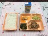 【本日のメニュー】豚肉の中華みそ焼き、あつあげのピリ辛あんかけ、キャベツのオイス...