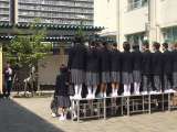 4月10日(火) 青空の下、中庭で学級写真を撮りました。