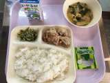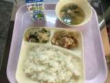 4月19日(木) 「豚肉のしょうが焼き、みそ汁、じゃこピーマン、抹茶大豆」 ...