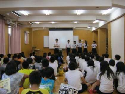 先日、校区の小学校(西淡路小・淡路小)の6年生を招いて、中学校の見学会を行いました。