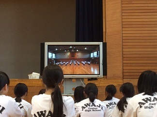 2年生全員で「南中ソーラン」に取り組んでいるのですが、一人一人の踊りが全体と合っているのかがなかなかわかりませんでした。そこで、全体で踊っている様子をiPADで撮影。即、電子黒板に映し出し、各自の動きをチェックできるように工夫してみました。