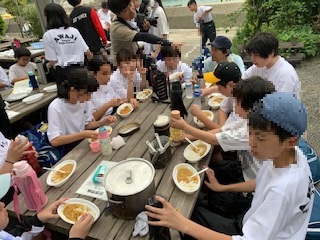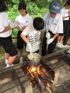 野外炊飯のようすです。