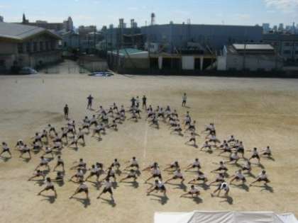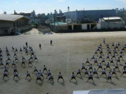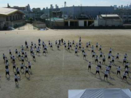 踊りの振り付けはしっかりマスターできているようです。あとは各列(ライン)の動きを正確に美しく整える段階になりました。広い運動場では自分の位置がわかりにくく、しかも踊りながらの隊形移動は、相当意識をしないと上手くいきません。