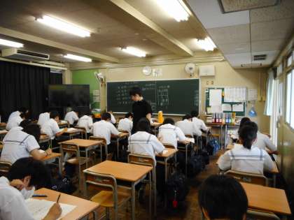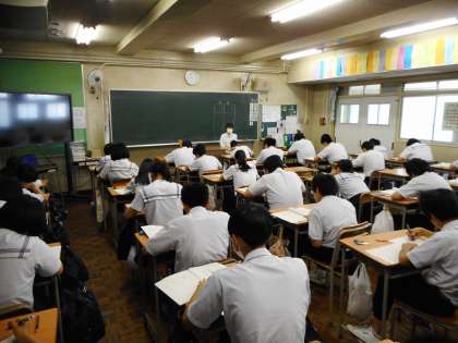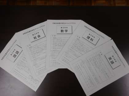 教科は国語・社会・数学・理科・英語の5教科です。少し緊張しているようですが、日頃の力を発揮してほしいと思います。