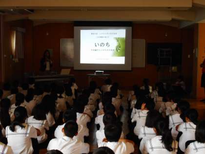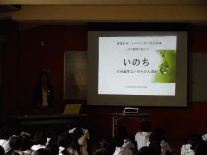 その後、外部講師の先生より、男子・女子それぞれの発達について、また、多くの人たちに愛されて育ってきたなど「二次性徴期の誕生学 いのち 生命誕生と命の大切さ」について、お話をしていただきました。