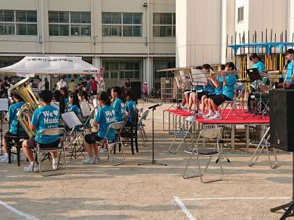 西淡路小学校の児童、本校の生徒、地域の方々やPTAの皆さま他、多くの方々が来場され、大いに盛りあがったお祭りでした。