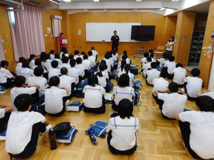 各学年に分かれて学年集会を行い、学年の先生から、夏休み中の生活や学習についての確認や、2学期に向けての心構えなどについてお話がありました。