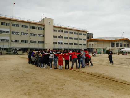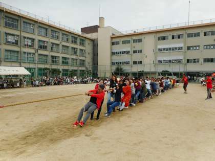 3年生の優勝クラスの3年1組とPTAの方々と綱引きをしました。PTAの方々の勝利でした。参加していただいたPTAの皆さまありがとうございました。