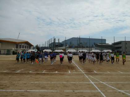 (上から 陸上部 吹奏楽部 全部活動入場)