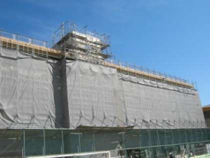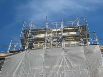 運動場に面しており、体育の授業をはじめ放課後の部活動などで(現在時刻がわかり)役立っていましたが、長年の汚れが目立つようになっていました。今回の工事で大時計付近にも足場が組まれたため、盤面の洗浄・リフレッシュをしていただきました。校舎の最上部に据え付けられたシルバー大時計。改めて見ると近代的なデザインで美しいです。完成が待ち遠しいですね。