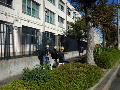 小学生が中学校に直接登校する中、校門で「おはようございます」と声をかけられ、小学生の皆さんが元気に「おはようございます」と大きな声であいさつを返してくれました。