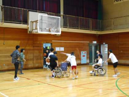 大阪ボランティア協会の方々にお越しいただき、車いすとバスケットボールの体験を行いました。
