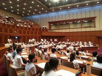 まずは、全体会で、議長、副議長の選出。最初は、本校の3人とも、かなり緊張していましたが、2人が積極的に立候補しました。しかし、抽選の結果、残念ながら選ばれず。(15人も立候補者がいたようです。残念!)
