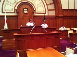 <写真右 議長席に特別に座らせてもらい撮影しました>