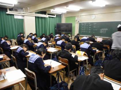 テスト勉強を頑張った生徒たちは、最後まであきらめずに集中して問題を解いていました。