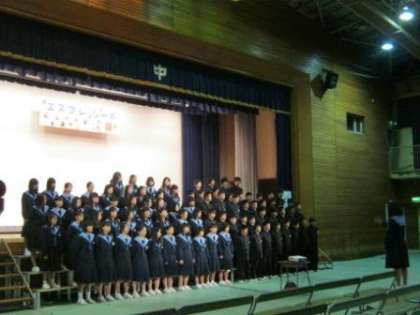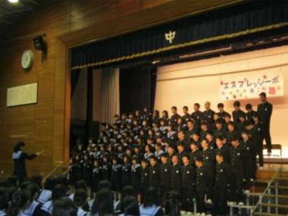 (上)開会ファンファーレ (中)1年合唱 (下)2年合唱