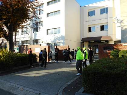 朝早くから、地域の方々に学校周辺の交差点等に立っていただき、生徒たちの登校を見守っていただきました。また、校門前でも、ひとりひとりの生徒に声をかけていただきました