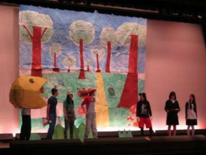 1,2年生は、合唱曲の練習に余念がありません。合唱する前のメッセージ(読み上げ)や課題曲を繰り返し練習していました。3年生は創作劇の最終仕上げ。舞台ではセリフの言い回しや背景(セット)の出し入れなど、熱心に稽古していました。