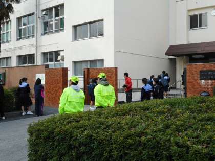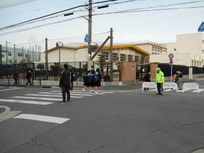 朝早くから、地域の方々に学校周辺の交差点等に立っていただき、生徒たちの登校を見守っていただきました。また、校門前でも、ひとりひとりの生徒に声をかけていただきました。