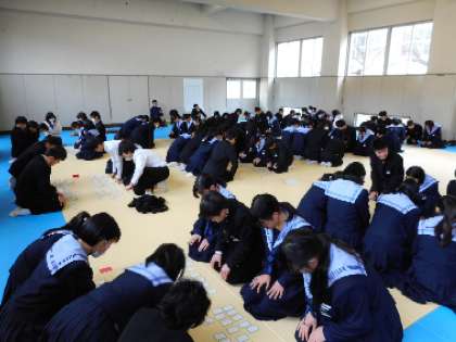 各クラス3〜4人のチームを組み、団体戦で札を取り合いました。
