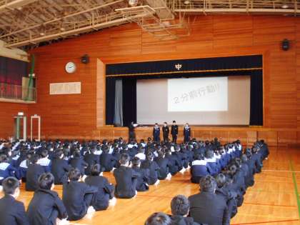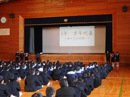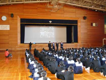 発表する人たちの思いやメッセージを、全校生徒が真剣に聞き、この「仲間の日」の取組みを通して、それぞれの淡路中学校での活動をみんなで共有することができました。