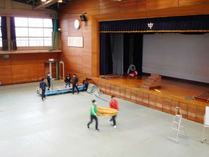 例年は2年生の生徒が卒業式会場の設営するのですが、教職員一丸となって会場設営に取り組んでいます。限られた人数ですが、少しずつコツコツとまた、丁寧に心を込めて設営しています。