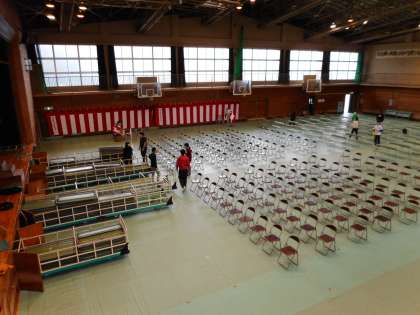 3月13日の卒業証書授与式に向け教職員が準備をしています。