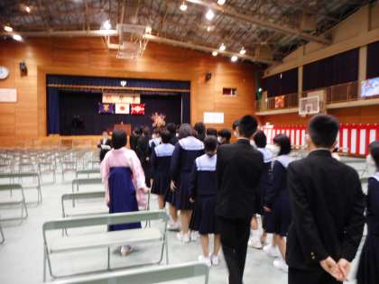 臨時休業の影響で、卒業式の練習ができていなかったため、開式前の短時間で式次第にそって、式場への入場から始まり、「卒業証書授与」や「起立・礼・着席」、「在校生を送る歌」や「卒業生の歌」など最終の練習をしました。