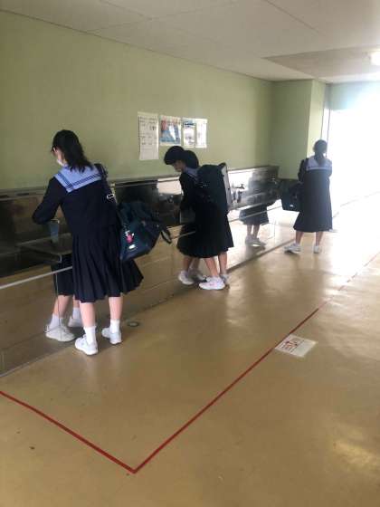 校舎に入ったら、先ずは学年廊下で健康観察と手洗いの後、晴れて教室へ、手続きは万全です。