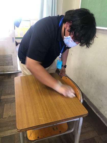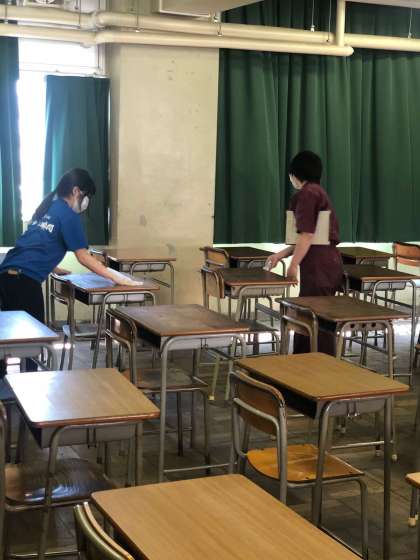午前・午後の各クラス半分づつの分散登校となりますが、全校生徒が給食を食べ、12日まで毎日3時間の授業を受けます。