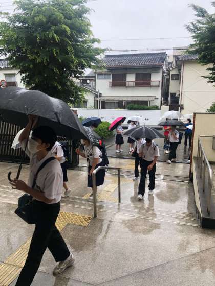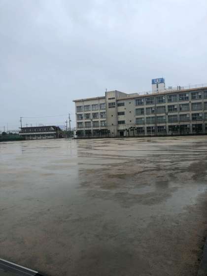 今日は、昨日から降り続く雨で一日中、梅雨冷えのする1日でした。淡路中が誇る東洋一の水捌けの良いグラウンドもご覧の通りです。
