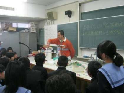 1年生理科「物質の変化」の授業で、不思議な実験が行われています。