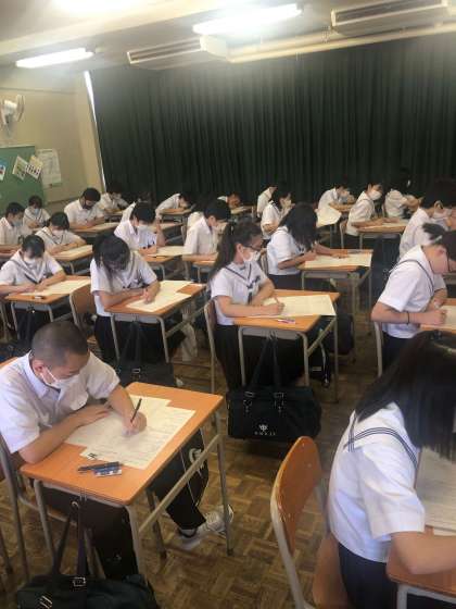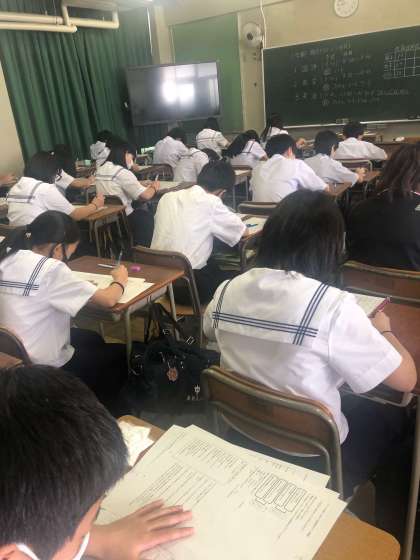 本年度1学期は入学式・始業式のスタートから、新型コロナウィルスの影響で、休業措置、分散登校と学校教育活動が十分に機能しない日々が続き、授業時数の減少に伴う学習進度も未だ大幅に遅れての現状のなか、本校は1学期は中間テストを中止し、期末テストのみとしています。